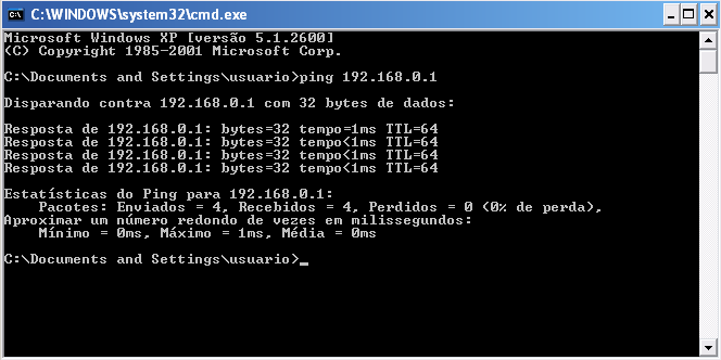 Exemplo para ver a latência até seu roteador wifi: ping 192.168.0.1